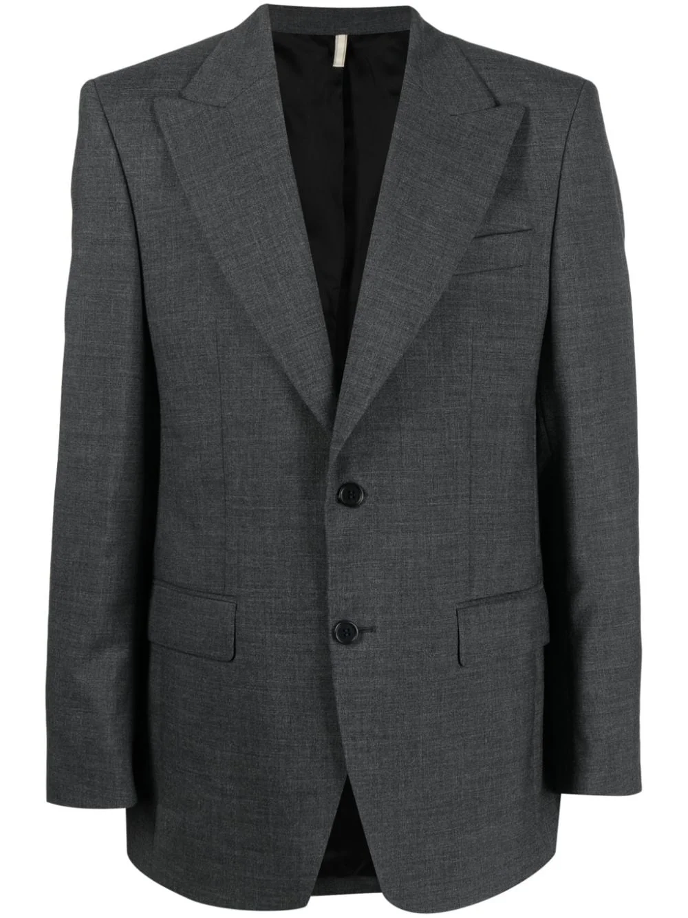 single-breasted wool blazer Highlights - Charcoal grey - Wool - Peak lapels - Front button fastening - Long sleeves - Buttoned cuffs - Chest welt pocket - Two front flap pockets - Full lining Imported Composition Wool 100% SIZE & FIT Model measurements Height 6 ft 1 in(1.85 m) Bust/Chest 35.43 in(90 cm) Hips 35.82 in(91 cm) Waist 27.55 in(70 cm) FittingInformation Designed for a slim fit, offering a comfortable fit that sits just away from the body The vented hem offers movement at the rear Made from a midweight non-stretch fabric This piece fits true to size – take your usual size Washing instructions Dry Clean Only
