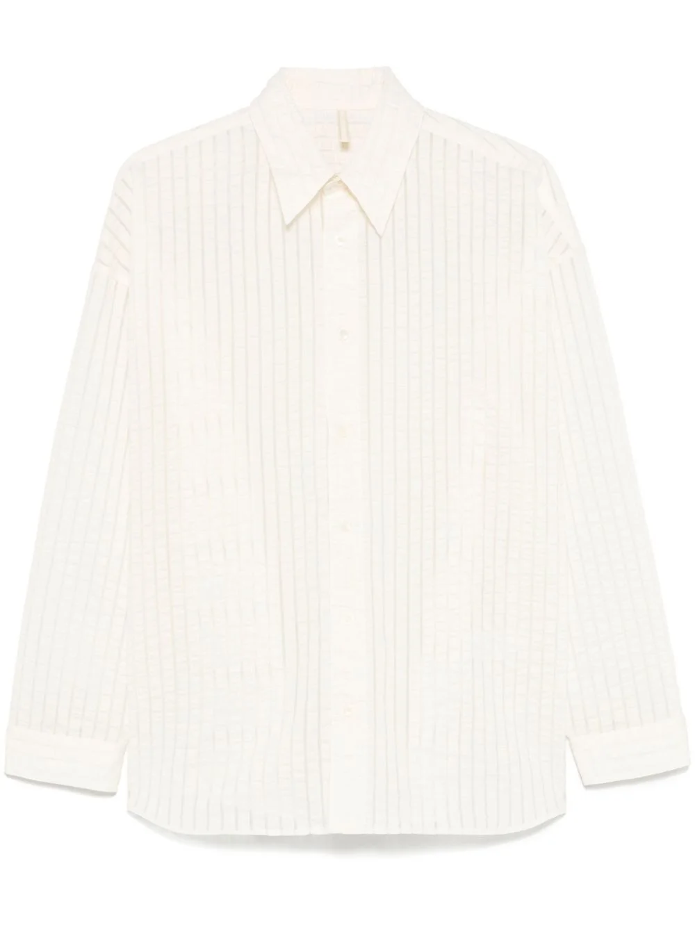 Stable shirt Highlights - Ecru - Classic collar - Front button fastening - Buttoned cuffs - Vertical stripe pattern Imported Composition Cotton 74%, Polyamide 26% SIZE & FIT Model measurements Height 6 ft 2 in(1.87 m) Bust/Chest 37.79 in(96 cm) Hips 37.79 in(96 cm) Waist 30.31 in(77 cm) FittingInformation Designed to be unstructured, offering a loose fit throughout Made from a lightweight non-stretch fabric