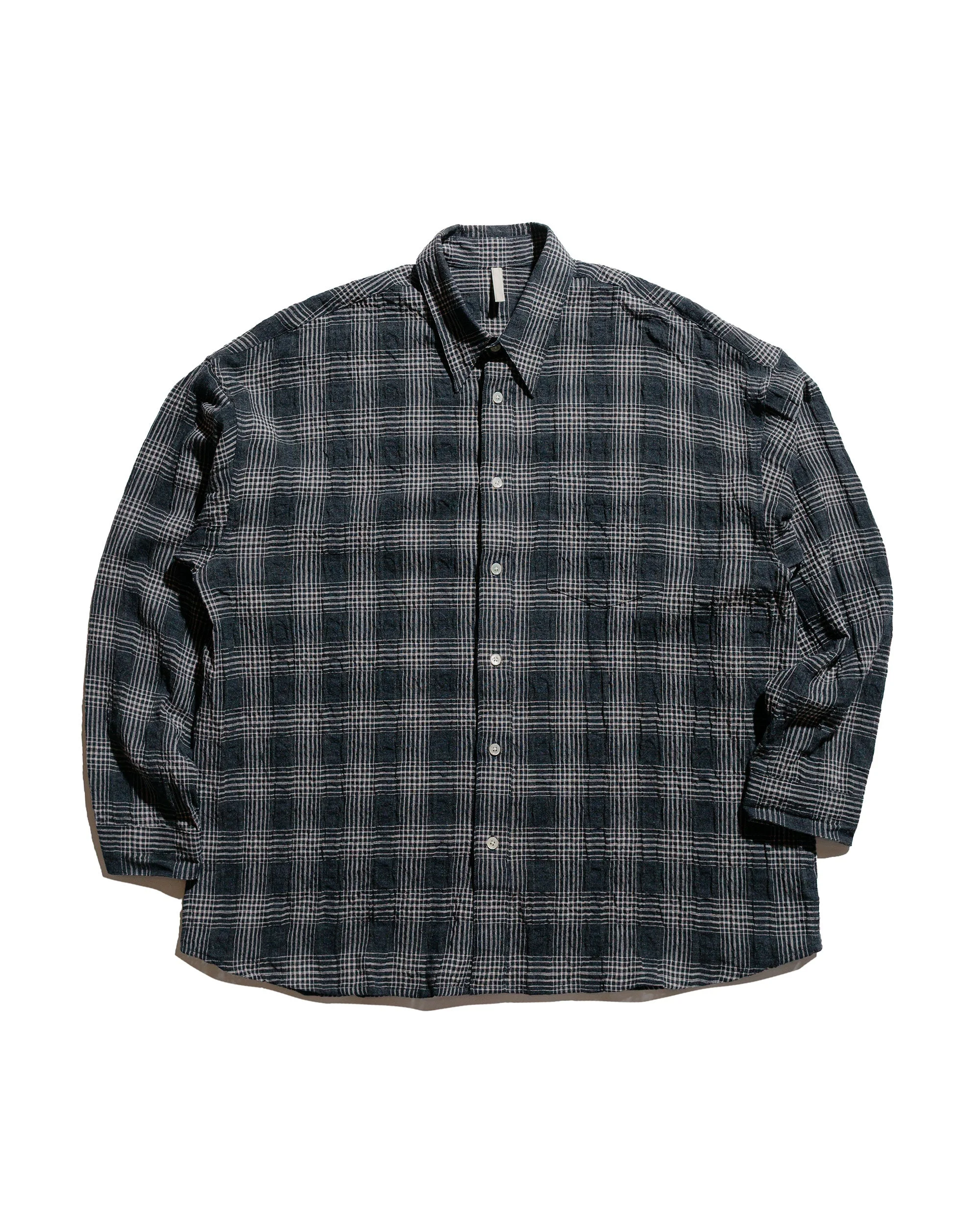 Sunflower is one of those sneaky brands. It's as if they do everything well and their shirting is no exception. When we find a good fabric, especially with shirting material we are unlikely to say no to bringing it in. And what do we have here? A beautiful check that just drapes on the body giving you that slightly oversized fit and fantastic feel. DETAILS - Italian cotton blend check - Chest pocket - Curved hem - Mother of pearl buttons - 48% cotton 28% viscose 20% polyester 2% linen 2% other fibres - Made in Portugal - Model is 6'1" (186cm), 160lbs (73kg) and wearing size L