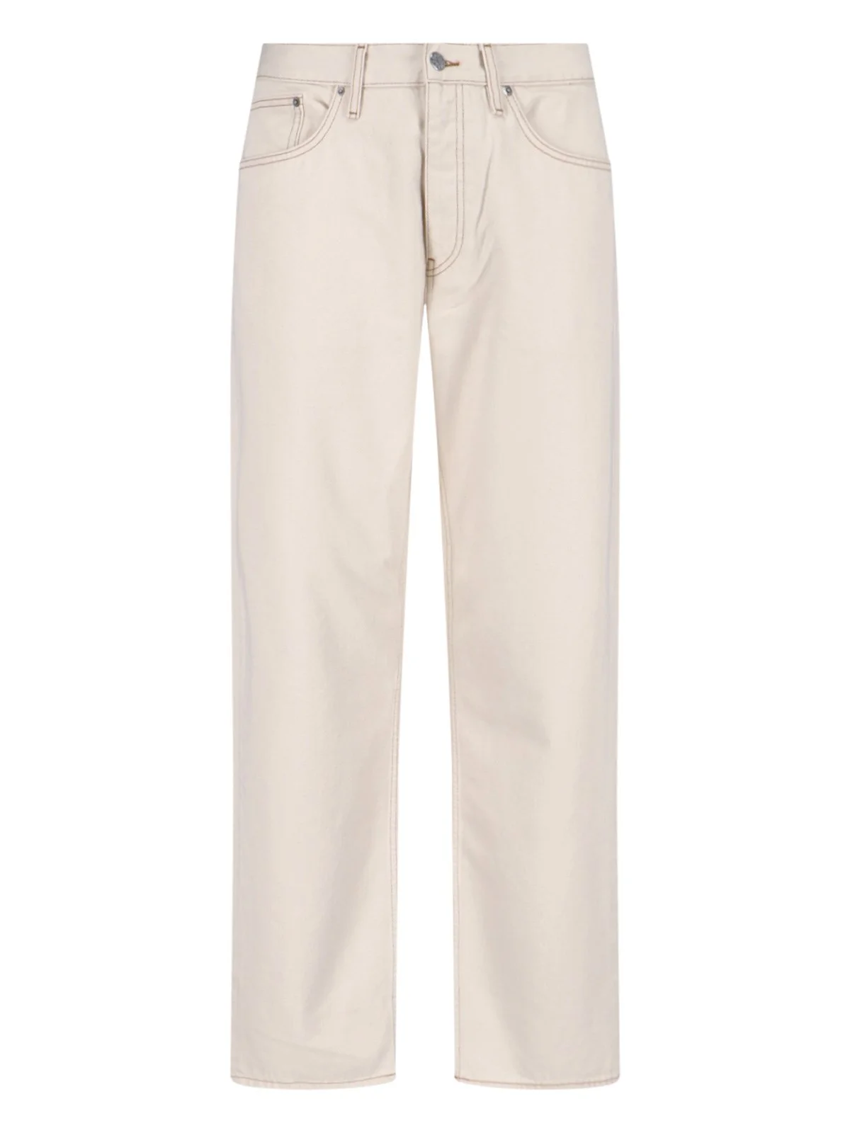 SUNFLOWER STRAIGHT JEANS IN CREAM COTTON DENIM WITH MID WAIST, BELT LOOPS, FIVE-POCKET DESIGN, BUTTON AND ZIP CLOSURE, LEATHER LOGO PATCH ON THE BACK, STRAIGHT LEG. PRODUCT INFO PRODUCT CODE 5123706 ECRU CONTRAST COMPOSITION: 100% COTTON SIZE AND FIT: REGULAR FIT MADE IN: TUNISIA
