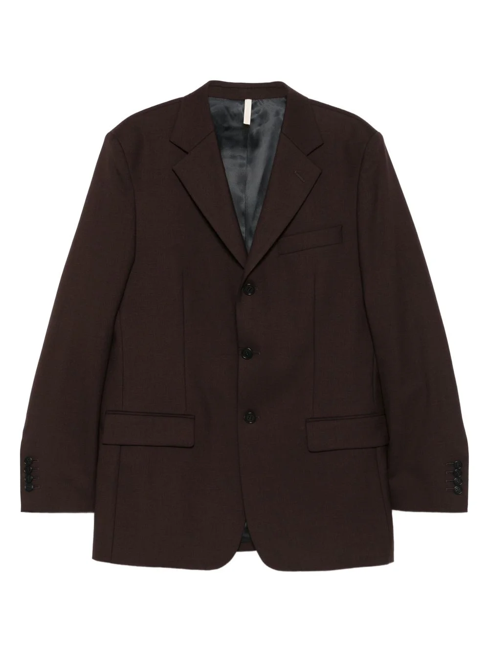 three-button notch-lapel jacket Highlights - Brown - Three buttons - Notch lapel - Long sleeves - Buttoned cuffs - Welt pockets Imported Composition Fabric 100% SIZE & FIT Model measurements Height 6 ft 0 in(1.84 m) Bust/Chest 35.82 in(91 cm) Hips 37 in(94 cm) Waist 28.34 in(72 cm) Washing instructions Read Manufacturer Guidelines