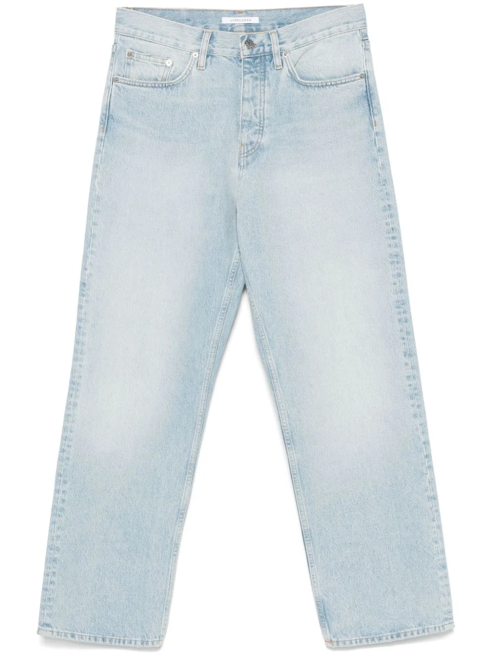 washed jeans Highlights - Light blue - Button fly fastening - Belt loops - Classic five pockets - Logo patch to the rear Imported Composition Organic Cotton 100% SIZE & FIT Model measurements Height 6 ft 1 in(1.86 m) Bust/Chest 37.4 in(95 cm) Hips 36.22 in(92 cm) Waist 29.52 in(75 cm) FittingInformation Designed with a straight leg, these jeans allow for an unrestricted and comfortable fit over the leg Sturdy and hard-wearing, this denim piece offers no stretch