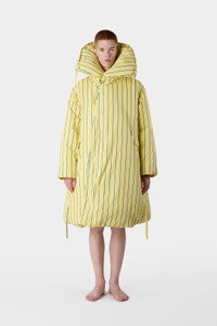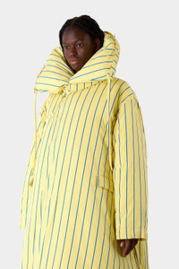 Maxi puffer coat with changeable covers in yellow stripes. The idea comes from a real duvet where you can change bedsheets. OUT: 100% CO / LINING: 100% CO / FILLING: 100%PL Materials from Italy Made in Italy Coretin is wearing a size M. Model measures: Height: 186cm Chest: 87cm Waist: 72cm Hips: 92cm Shoe: 44 Coretin is wearing a size M. Model measures: Height: 186cm Chest: 87cm Waist: 72cm Hips: 92cm Shoe: 44