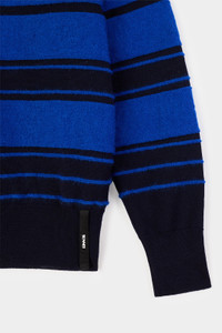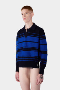 STRIPED KNIT LONSGLEEVE POLO / dark blue & electric blue