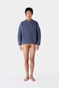 Regular-fit sweater in blue and white melange Japanese-yarn 3D knit with kimono sleeves and applied cuffs and hem. 100% PL Materials from Italy Made in Italy Junseo is wearing a size M. Model measures: Height: 188cm Chest: 89cm Waist: 71cm Hips: 92cm Shoe: 42 Junseo is wearing a size M. Model measures: Height: 188cm Chest: 89cm Waist: 71cm Hips: 92cm Shoe: 42