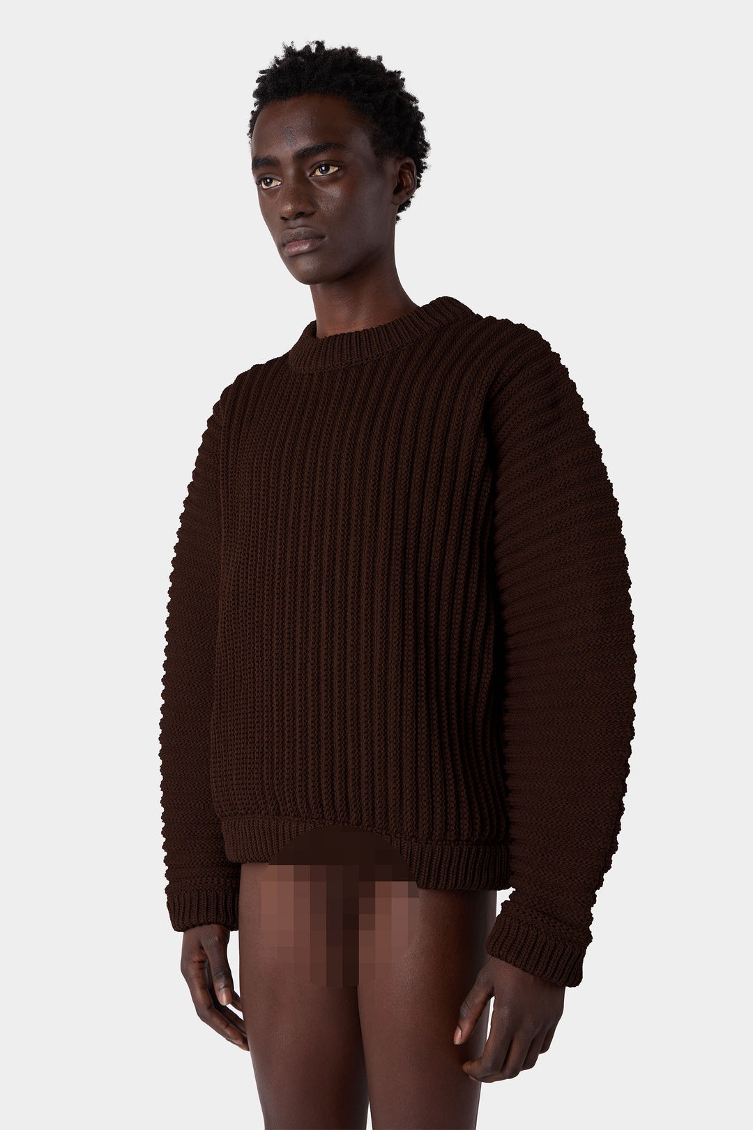 Regular-fit sweater in brown Japanese-yarn 3D knit with kimono sleeves and applied cuffs and hem. 100% PA Materials from Italy Made in Italy Choi is wearing size M Model measures: Height: 185 cm Chest: 85 Waist: 68 Hips: 88 Choi is wearing size M Model measures: Height: 185 cm Chest: 85 Waist: 68 Hips: 88