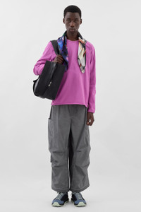 Cargo parachutes featuring double darts on the knees, elasticated waistband and internal drawstring to adjust. 98% CO 2%EA Materials from Italy Made in Italy Momo is wearing a size M. Model measures: Height: 187cm Chest: 75cm Waist: 63cm Hips: 85cm Shoe: 43