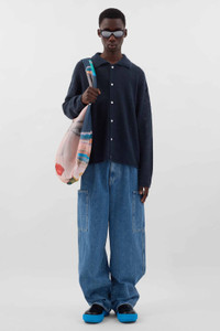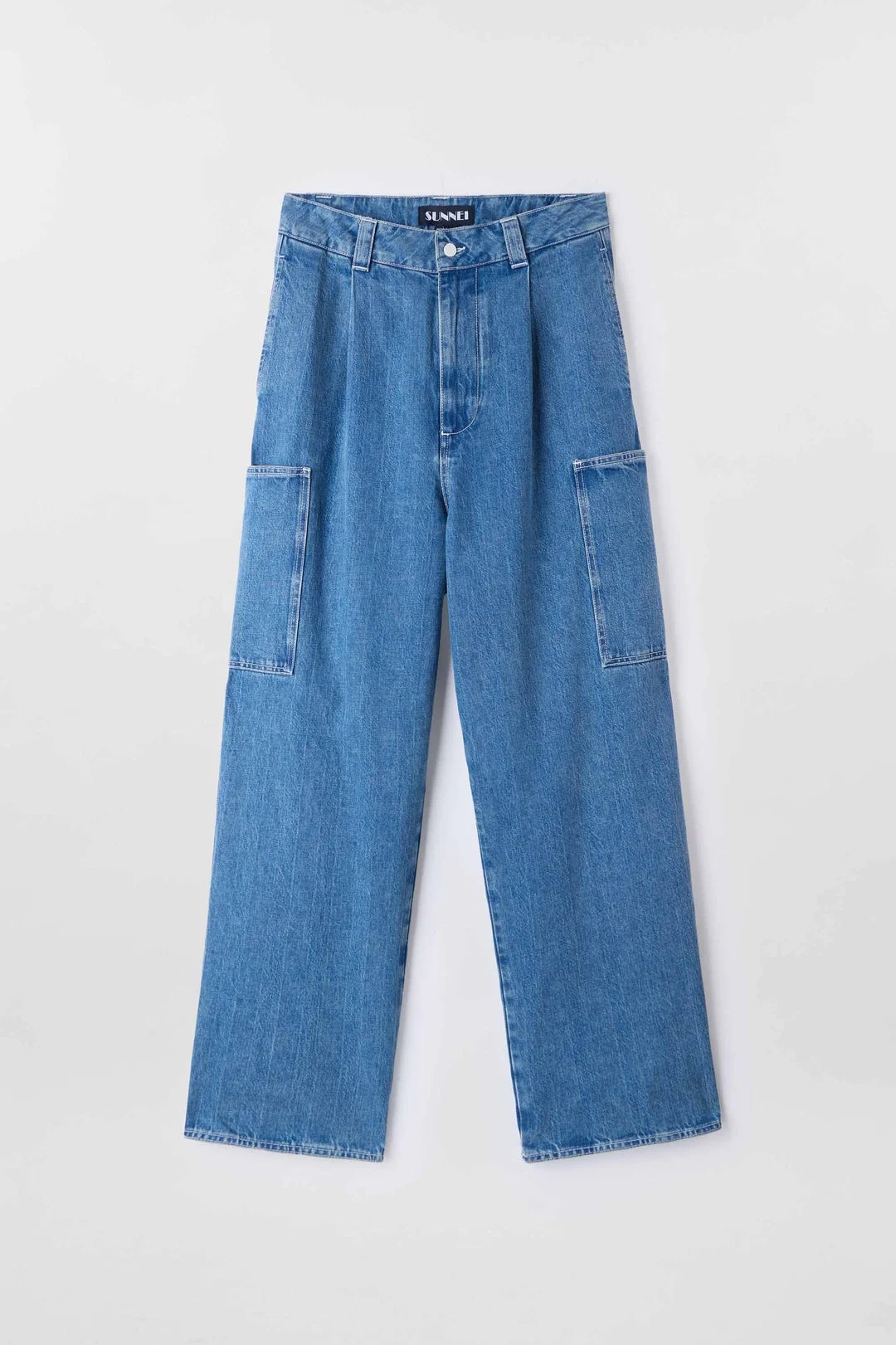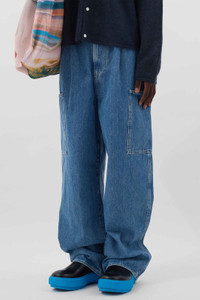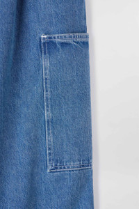 Cargo over pants in light washed organic denim. Back silicone SUNNEI patch. 100% CO Materials from Italy Made in Italy Massaer Seck is wearing a size M. Model measures: Height: 185cm Chest: 84cm Waist: 67cm Hips: 85cm Shoe: 43