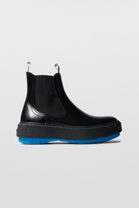 Chelsea ankle boot in black leather with a chunky textured sole and blue pop color outsole Exterior: 90% LEATHER 20% ELASTAN / Outsole: 100%TR Materials from Portugal Made in Portugal