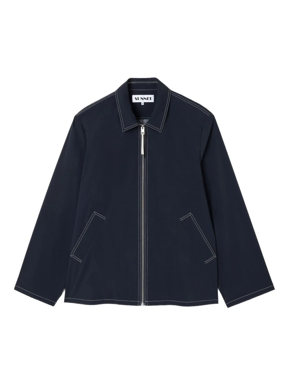 contrast stitching simo jacket Highlights - Dark blue - Contrast stitching - Zip fastening - Point collar - Long sleeves - Straight hem Imported Composition Cotton 65%, Polyurethane 35% Washing instructions Read Manufacturer Guidelines