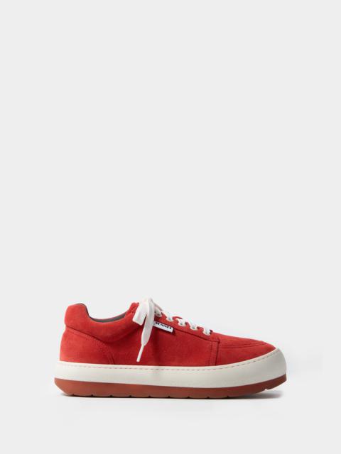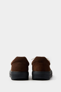 Dreamy sneakers with laces. Chocolate upper with black rubber outsole. Upper: 100% LH Sole: 50% EVA - 50% EL Materials from Italy Made in Italy O min is wearing a size M. Model measures: Height: 186cm Chest: 84cm Waist: 66cm Hips: 87cm Shoe: 43