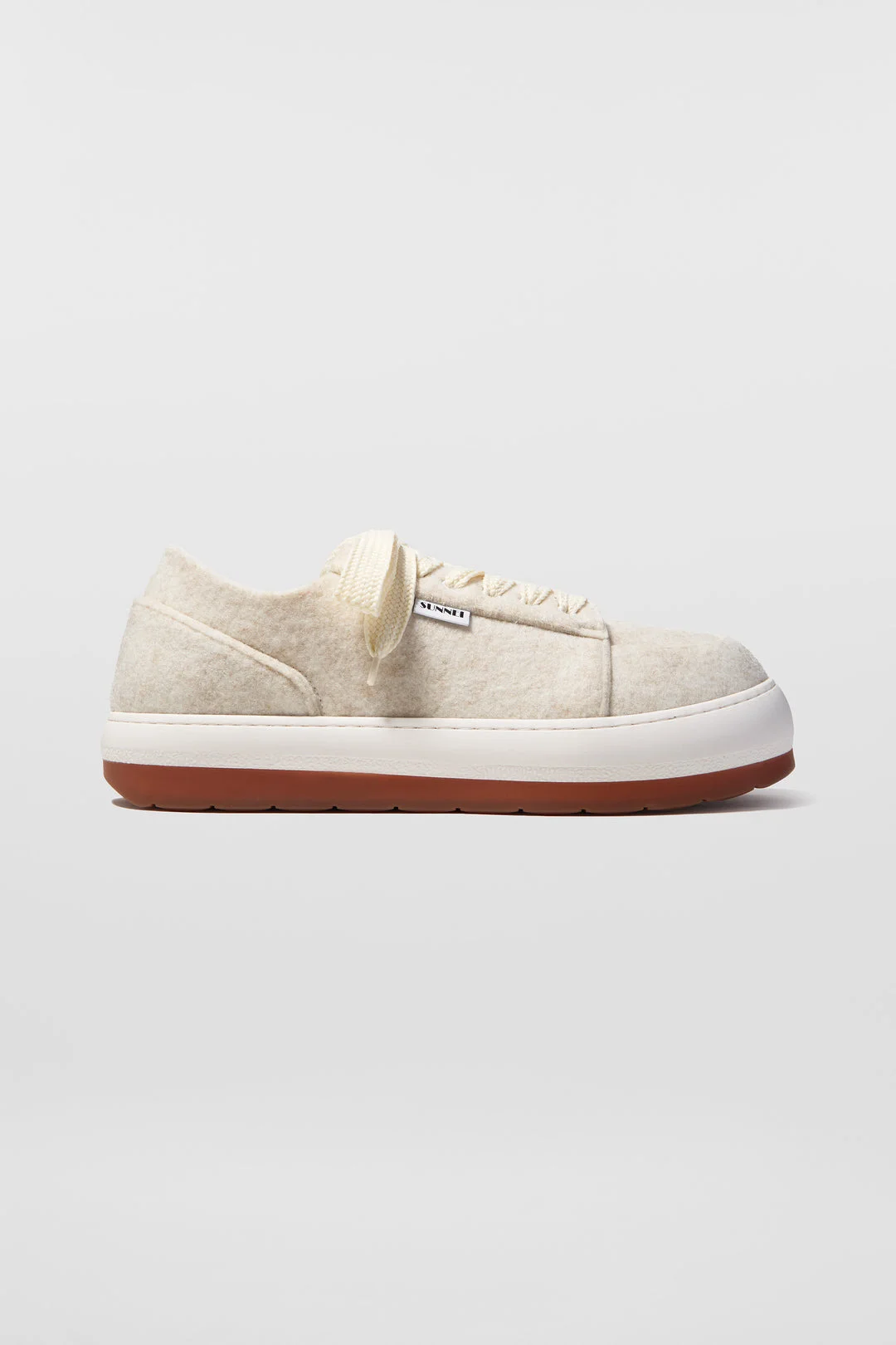 Unlined ivory felt dreamy sneakers with laces and rubber outsole. Exterior 100% PL Outsole 100% TR Materials from Italy Made in Italy