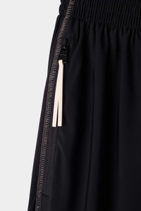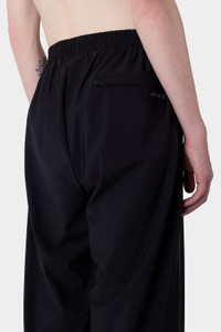 Elastic straight-fit pants in black technical fabric featuring two-pockets styling and one back pocket with SUNNEI logo silicon puller and box print on back. 60%NY 22%EL Materials from Italy Made in Portugal Coretin is wearing a size M. Model measures: Height: 186cm Chest: 87cm Waist: 72cm Hips: 92cm Shoe: 44 Coretin is wearing a size M. Model measures: Height: 186cm Chest: 87cm Waist: 72cm Hips: 92cm Shoe: 44