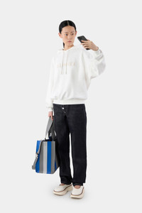 Long sleeve hoodie in dust jersey with embroidered big logo on front. Drawstring at hood and ribbed cuffs and hem. 100% CO Material from Portugal Made in Portugal Awen is 176cm tall and she is wearing a size S.