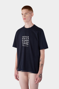 Dark blue fit shortsleeve t-shirt with glow-in-the-dark print on front. 100% Organic CO Materials from Portugal Made in Portugal Coretin is wearing a size M. Model measures: Height: 186cm Chest: 87cm Waist: 72cm Hips: 92cm Shoe: 44 Coretin is wearing a size M. Model measures: Height: 186cm Chest: 87cm Waist: 72cm Hips: 92cm Shoe: 44