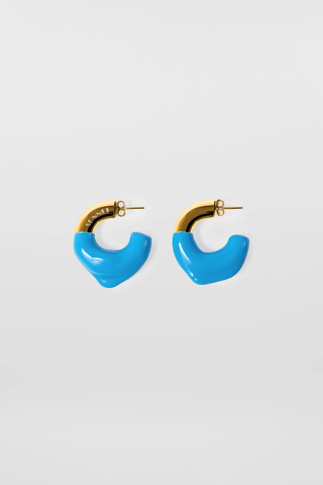 SMALL RUBBERIZED EARRINGS GOLD / light blue
