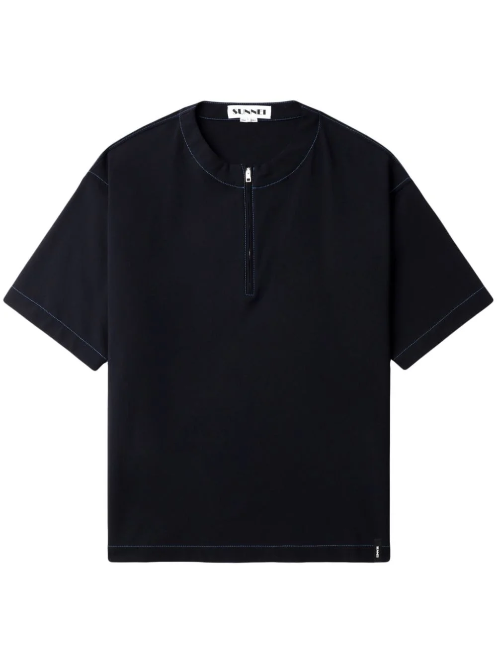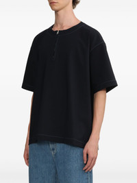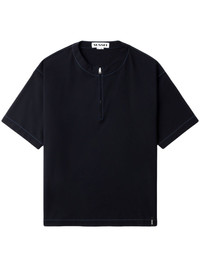logo-patch T-shirt Highlights - Navy blue - Short front zip fastening - Drop shoulder - Short sleeves - When buying this unisex item, keep in mind that it is graded in standard men's sizing. Made in Italy Composition Polyester 53%, Virgin Wool 47%