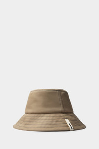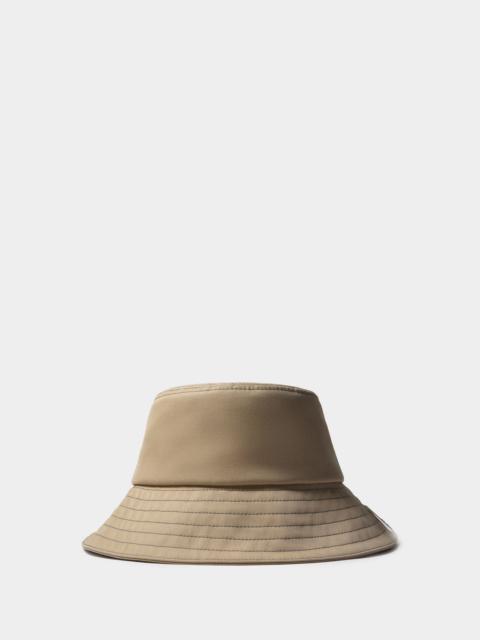 Water-repellent bucket hat in beige compact brushed cotton with SUNNEI logo at side. 62% PL 28% CO 10% PU Materials from Portugal Made in Portugal