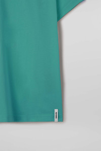 Emerald green garment-dyed classic fit t-shirt featuring ribbed collar and SUNNEI gros grain on front left side. 100% CO Materials from Portugal Made in Portugal