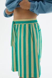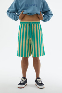 Short elastic pants in green and yellow striped cotton. Drawstring waist, mid-rise, and four-pocket styling. 100% CO Material from Italy Made in Italy