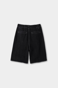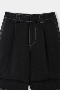 Short pants in black washed denim featuring four pockets. Zipper closure and white contrast stitchings. 100% CO Made in Italy Material from Italy