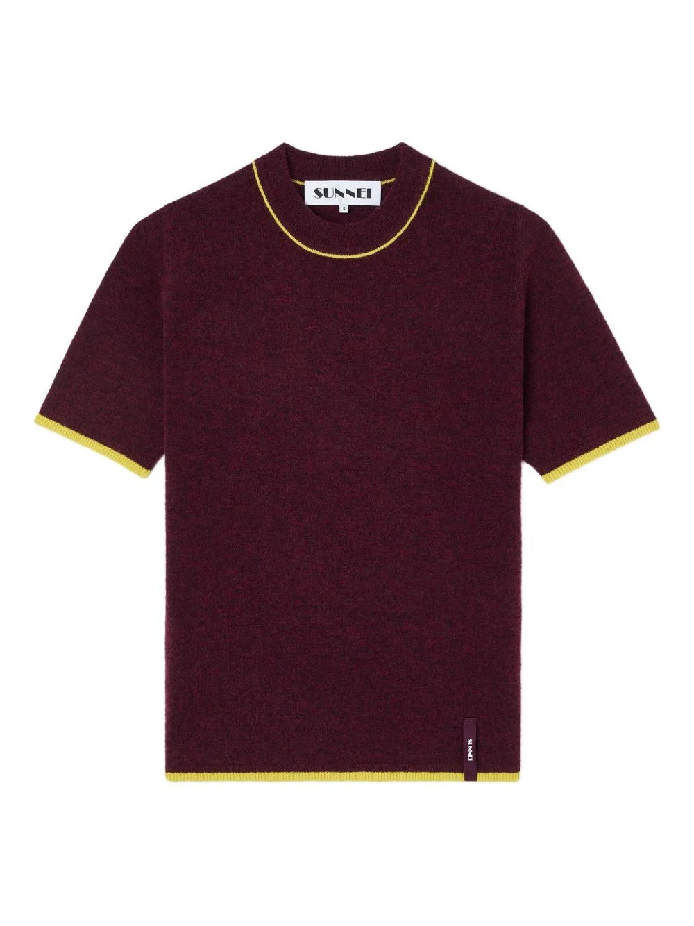 short-sleeve T-shirt Highlights - Burnt aubergine - Short sleeves - Knit texture - Ribbed trims - Logo label Imported Composition Polyamide 59%, Viscose 23%, Merino 10%, Cashmere 5%, Spandex/Elastane 3% Washing instructions Read Manufacturer Guidelines