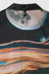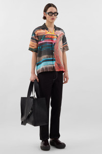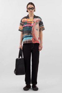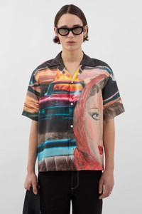 Shortsleeve over-fit shirt with seasonal Annemarie print in viscose featuring mother pearls buttons on front and SUNNEI loop on the centre back. 100% VI Materials from Italy Made in Italy Etienne is wearing a size M. Model measures: Height: 188cm Chest: 92cm Waist: 75cm Hips: 86cm Shoe: 44