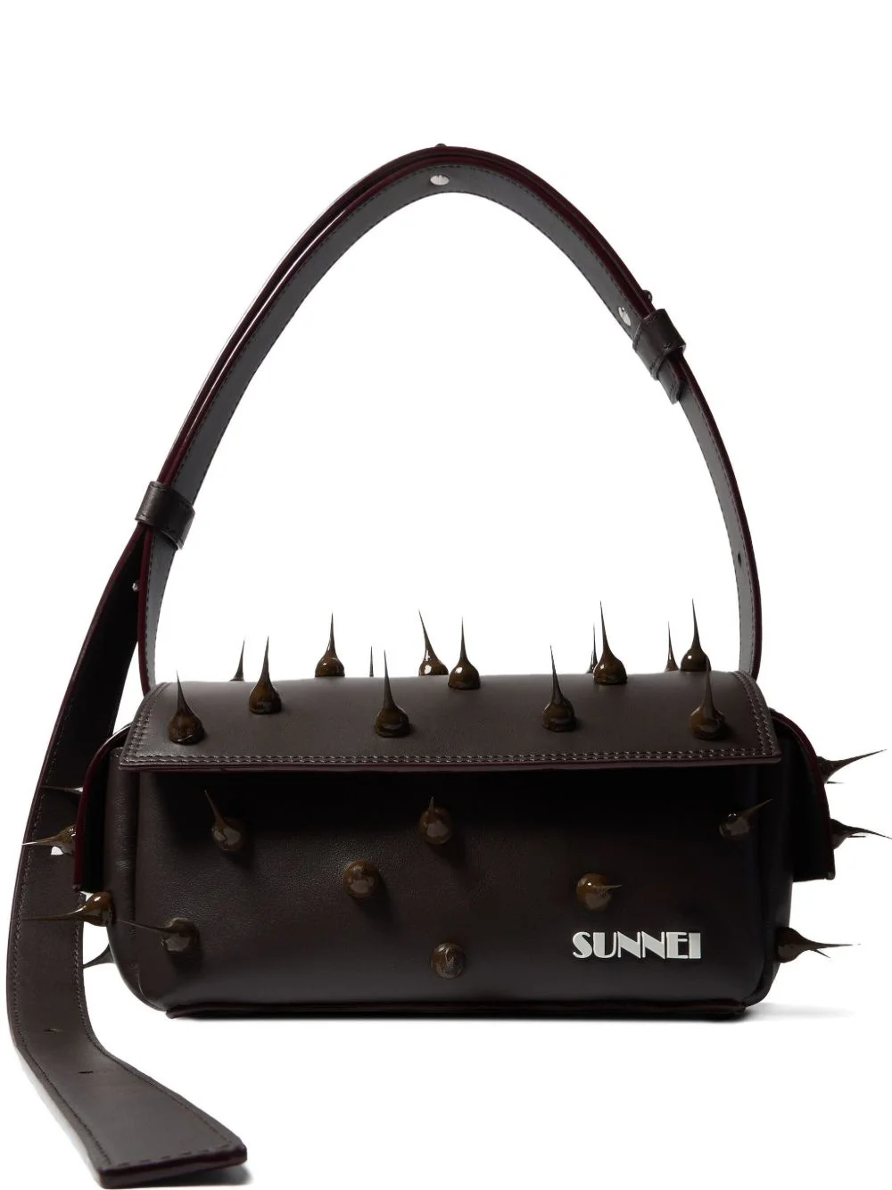 small Spiky Labauletto leather shoulder bag Highlights - Dark brown - Spike-detailing - Detachable shoulder strap - Logo detailing - Structured silhouette Made in Italy Composition Outer: Leather 100%, Brass 50%, Rubber 50% Lining: Microfibre 100%, Cotton 100% SIZE & FIT Measurement DEPTH 4.72 in(12 cm) HEIGHT 4.72 in(12 cm) WIDTH 9.05 in(23 cm)