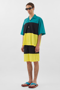 Shortsleeve shirt in a super light and breathable feather fabric featuring multicolor horizontal printed stripes, rubberized SUNNEI buttons on front and SUNNEI gros grain hoop on the centre back.Feather is the ultimate light fabric from Italy for men’s swimwear, offering exceptional elasticity, breathability, and quick-drying performance. Made from ultra-fine lycra, it ensures superior comfort, durability, and UV protection. 90%PA 10%EA Materials from Italy Made in Portugal