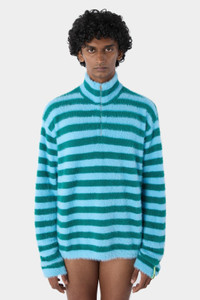 Fluffy nylon yarn 18 gauge - striped pattern -regular fit , longsleeve with high neck and palladium zip half zip. 100% PA Materials from Italy Made in Italy