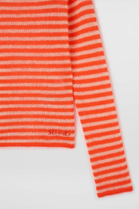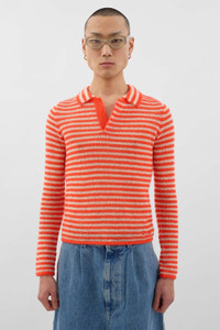 Striped longsleeve fitted polo in light mixed mohair knit featuring SUNNEI embroidery on the bottom left. 38%PC 32%PA 30%WM