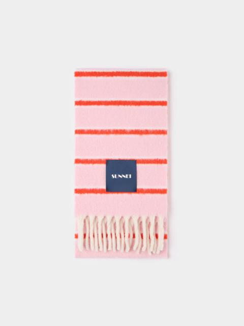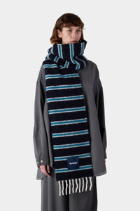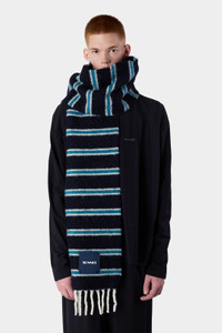 Multicolor blue-striped scarf in alpaca wool with fringes on ends. 41% Alpaca Superfine 41% Mohair Kid 16% PA 2% EA Materials from Italy Made in Italy