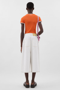 Shortsleeve top in bright orange stretchy jersey with contrast borders and SUNNEI print logo at the back. 75%PA 25%EA Materials from Portugal Made in Portugal Momo is wearing a size M. Model measures: Height: 187cm Chest: 75cm Waist: 63cm Hips: 85cm Shoe: 43