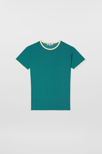 Shortsleeve top in jade green stretchy jersey with contrast borders and SUNNEI print logo at the back. 75% PA 25%EA Made in Portugal Changmho is wearing a size M. Model measures: Height: 187cm Chest: 84cm Waist: 65cm Hips: 87cm Shoe: 44 Changmho is wearing a size M. Model measures: Height: 187cm Chest: 84cm Waist: 65cm Hips: 87cm Shoe: 44