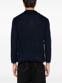 textured mohair-blend polo short Highlights - Navy blue - Mohair blend - Textured finish - Polo collar - V-neck - Long sleeves - Straight hem Made in Italy Composition Mohair 70%, Silk 30% SIZE & FIT Model measurements Height 6 ft 2 in(1.89 m) Bust/Chest 37.4 in(95 cm) Hips 35.03 in(89 cm) Waist 27.95 in(71 cm) FittingInformation Designed for a relaxed fit, this piece allows for comfort and movement when worn Made with a lightweight knit, this piece offers some stretch This piece fits true to size – take your usual size Washing instructions Hand Wash