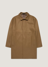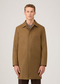 A timeless single-breasted overcoat, crafted from exceptionally soft boiled wool jersey sourced from a renowned Italian mill. Fully lined and cut in a regular fit, it is smart and elegant, with a concealed placket and minimal detailing. It features side seam welt pockets, two internal pockets, and a back vent for ease of movement. Product Code: MCOA7334-BRGI Fabric & Care - 79% Wool, 21% Polyamide - Do not tumble dry - Dry clean only - Made in Portugal Size & Fit - Regular fit - Model is 6'3", chest 39" and wears a size M