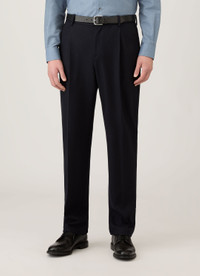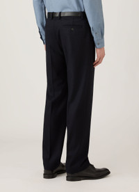 A single-pleat trouser crafted from exceptionally soft, smooth boiled wool sourced from a renowned Italian mill. Cut in a regular fit, it features a tailored waistband with notch detailing, slanted side pockets, and rear welt pockets. Pair with the matching zip jacket for a contemporary, refined set. Product Code: MTRS3121-BUAA Fabric & Care - 100% Wool - Do not tumble dry - Dry clean only - Made in Portugal Size & Fit - Regular fit - Pleat front - Tapered leg - Tailored waist - Model is 6'2" and wears a size 32