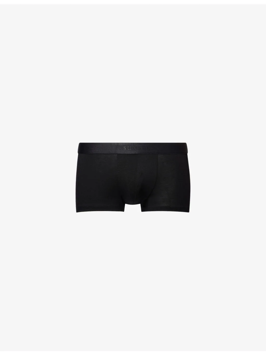 PRODUCT DETAILS - Sunspel stretch-woven trunks - 95% TENCEL™, 5% elastane - Mid-rise, branded elasticated waistband, central supportive pouch - Machine wash at 30°C - Made in Portugal - Model is 6ft 2in/1.88m and wears a size medium - Lightweight, stretchy - For hygiene reasons, we are unable to exchange or refund this product, unless faulty. Ref: R04520306