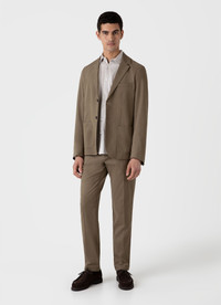A versatile unstructured blazer, crafted from an Italian brushed cotton - wool blend with a slight stretch for ease of movement. Striking the balance between tailored and relaxed, it features bluff pockets, a refined lapel, and horn buttons. Pair with the matching trouser for a contemporary, sophisticated set. Product Code: MJAC7135-BRFC Fabric & Care - 93% Cotton, 6% Wool, 1% Elastane - Horn buttons - Do not wash - Do not tumble dry - Dry clean only - Made in Portugal Size & Fit - Click here to view size chart - Regular fit - Model is 6'2", chest 38" and wears a size M