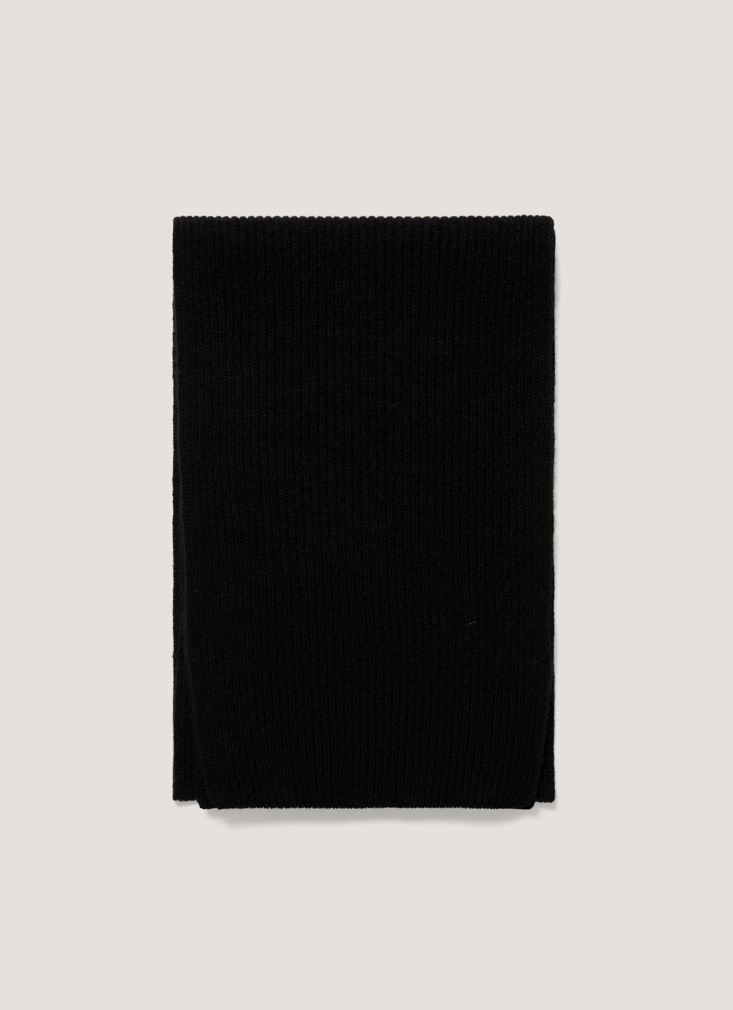 Knitted in Scotland from 100% pure cashmere, this ribbed scarf is the ultimate blend of warmth, softness, and timeless style. Its refined texture and lightweight feel make it ideal for layering. It pairs effortlessly with the matching hat and gloves for a complete winter look. Product Code: ASCA9054-BKAA Fabric & Care - Made in Scotland - 100% Cashmere - Cool hand wash - Do not tumble dry - Dry cleanable Size & Fit - 170cm x 30cm