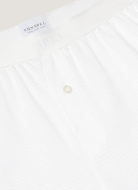 A classic one-button boxer short crafted from our unique Q14 ventilated cellular cotton fabric. Made using extra-long staple Californian Supima cotton, the lightweight open knit allows air to circulate freely, ensuring all-day breathability and comfort. Cut with a mid-rise and clean-finished legs for ease of movement. Product Code: MSHR4418-WHAA Fabric & Care - 100% Supima Cotton - Cotton is fully traceable and sustainably sourced from California - Cotton is extra-long staple for durability and comfort - Gentle wash at 30°C with similar colours - Do not tumble dry - Dry cleanable - Made in Portugal Size & Fit - Relaxed fit - One-button fly - Flat locked seams for added comfort - Elasticated waist - Model is 6'3" and wears a size M