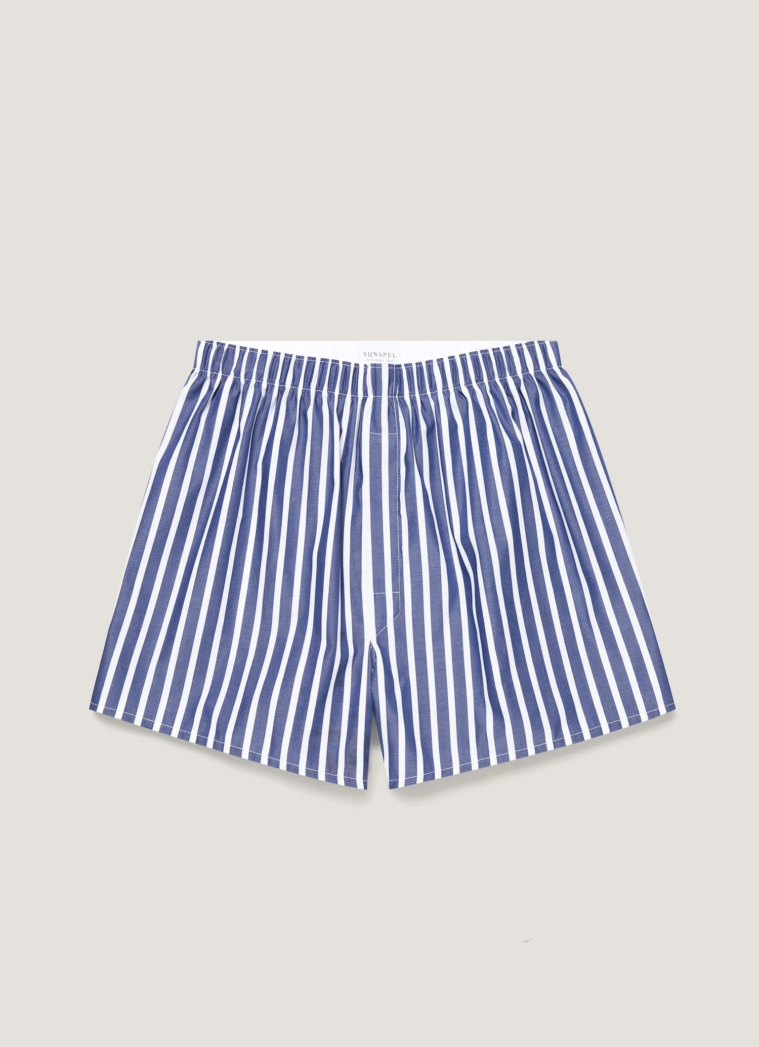 Sunspel introduced the boxer short to Britain in 1947. We also perfected its design. Today, with just a few minor tweaks, we still produce boxer shorts to our original specifications. The seams are double-turned and feldlocked to avoid rough edges. The rear has a distinctive back panel instead of an uncomfortable central seam. And each pair is cut from 100% long-staple fine cotton for unmatched lightness, softness and breathability. Product Code: MBOX4700-STLI Fabric & Care - 100% Cotton - Gentle wash at 40°C - Do not tumble dry - Dry cleanable - Made in Portugal Size & Fit - Classic design, barely changed since 1947 - Open fly - Back panel and enclosed seams for added comfort - Elasticated waist - Model is 6'2" and wears a size M