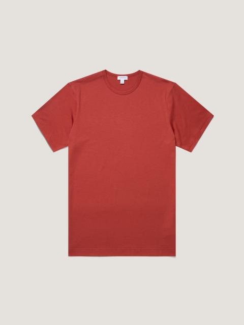 We made one of the world’s first T-shirts and have been perfecting it for over 100 years. Our Classic T-shirt is handmade in the Sunspel factory in Long Eaton, England, using the finest, extra-long staple Supima cotton that can be traced to its Californian farm of origin. The fabric - a unique Sunspel development - is lightweight, durable and exceptionally smooth against the skin. With a slim fit, it is essential to every wardrobe. We believe it is the perfect T-shirt. Product Code: MTSH0001-RDEM Fabric & Care - Made in England - 100% Supima Cotton - Cotton is fully traceable and sustainably sourced from a single farm in California - Cotton is extra-long staple and two-fold for durability and comfort - Gentle wash at 30°C with similar colours - Do not tumble dry - Do not dry clean Size & Fit - Slim fit - Model is 6'2", chest 38" and wears a size M
