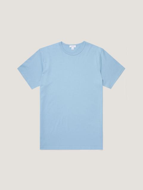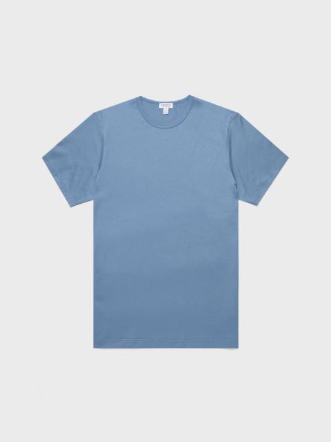 We made one of the world’s first T-shirts and have been perfecting it for over 100 years. Our Classic T-shirt is handmade in the Sunspel factory in Long Eaton, England, using the finest, extra-long staple Supima cotton that can be traced to its Californian farm of origin. The fabric - a unique Sunspel development - is lightweight, durable and exceptionally smooth against the skin. With a slim fit, it is essential to every wardrobe. We believe it is the perfect T-shirt. Product Code: MTSH0001-BUWF Fabric & Care - Made in England - 100% Supima Cotton - Cotton is fully traceable and sustainably sourced from a single farm in California - Cotton is extra-long staple and two-fold for durability and comfort - Gentle wash at 30°C with similar colours - Do not tumble dry - Do not dry clean Size & Fit - Slim fit - Model is 6'3", chest 36" and wears a size M