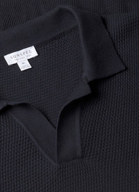 A refined knitted summer polo crafted from long-staple Egyptian cotton, spun in Italy for a soft, lightweight feel. Featuring a contemporary stitch and a buttonless neckline, it offers a clean, understated look, with a regular fit. Compact yet breathable, it is an effortless warm-weather staple. Product Code: MPOL8280-BUAA Fabric & Care - 100% Cotton - Gentle wash at 30°C - Wash with similar colours - Do not tumble dry - Dry cleanable - Made in Portugal Size & Fit - Slim fit - Model is 6'1", chest 38" and wears a size M