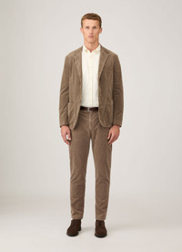 A classic blazer crafted from luxurious French corduroy, garment dyed for a beautifully soft handle. Featuring clean bluff patch pockets, functioning cuffs, and two internal pockets, it is fully unstructured for exceptional comfort and ease of movement. Pair with the matching Corduroy Trouser for the perfect winter suit. Product Code: MJAC7179-BRGC Fabric & Care - 98% Cotton, 2% Elastane - Do not tumble dry - Dry clean only - Made in Portugal Size & Fit - Regular fit - Model is 6'3", chest 39" and wears a size M