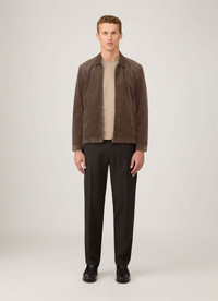A contemporary take on the classic Harrington jacket, crafted from luxurious French corduroy that has been garment dyed for a beautifully soft handle. Cut in a regular fit, it is fully lined and features a zip closure and side welt pockets. Pair with the matching Corduroy Trouser for a modern, refined set. Product Code: MJAC7195-BRGC Fabric & Care - 98% Cotton, 2% Elastane - Do not tumble dry - Dry clean only - Made in Portugal Size & Fit - Regular fit - Model is 6'3", chest 39" and wears a size M