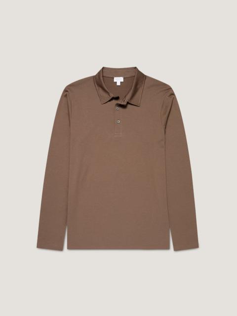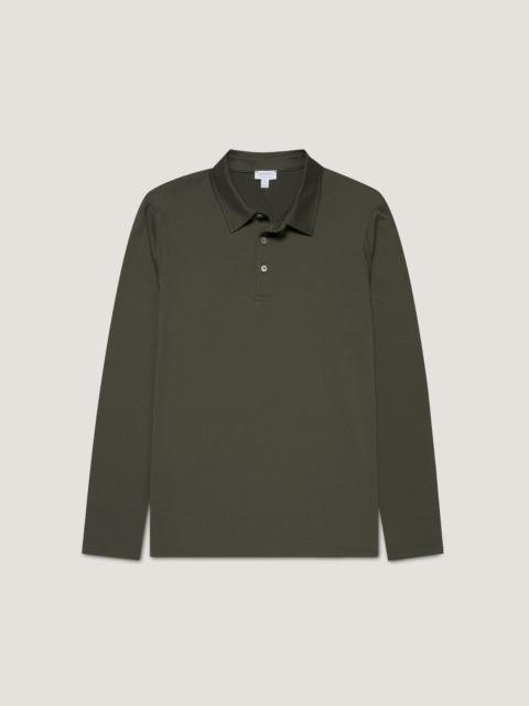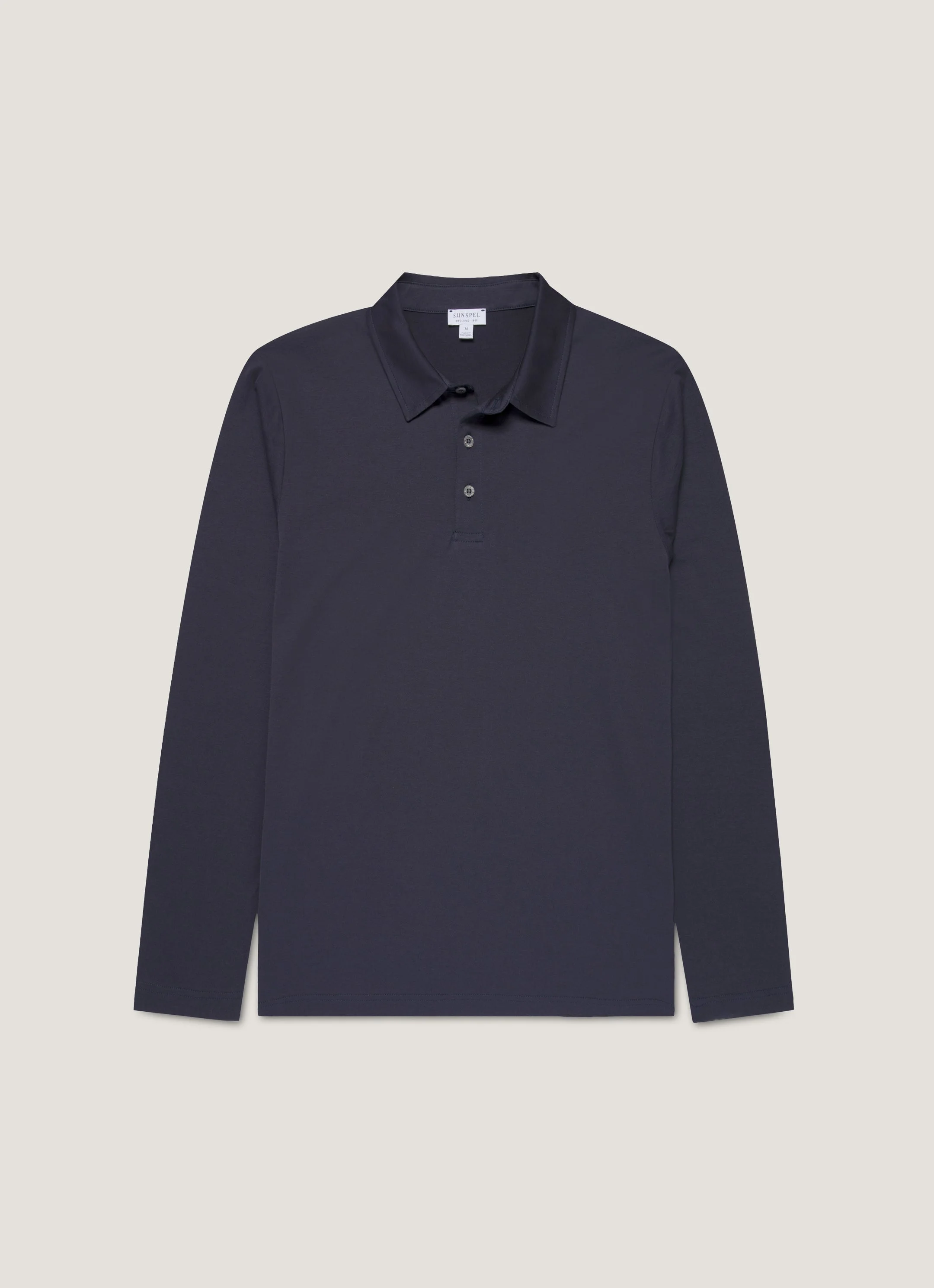 Our classic polo shirt gets an update, with a collar stand that gives it a more dressed up, formal look. The fabric is still the smooth, light, long staple cotton fabric we use for our classic T-shirts. As with all Sunspel's polo shirts since we began making them in the 1950s, the focus remains on comfort, fit and softness. Product code: MPOL1054-BUAA Fabric & Care - 100% Cotton - Machine wash at 30°C - Do not bleach - Do not tumble dry - Dry cleanable - Designed in England and made in Portugal Size & Fit - Fits true to size - take your normal size - Regular Fit - Two button fastening - Fit is slightly looser across the chest than our Classic Crew Neck T-Shirt - Model is 6'1" and wears a size Medium