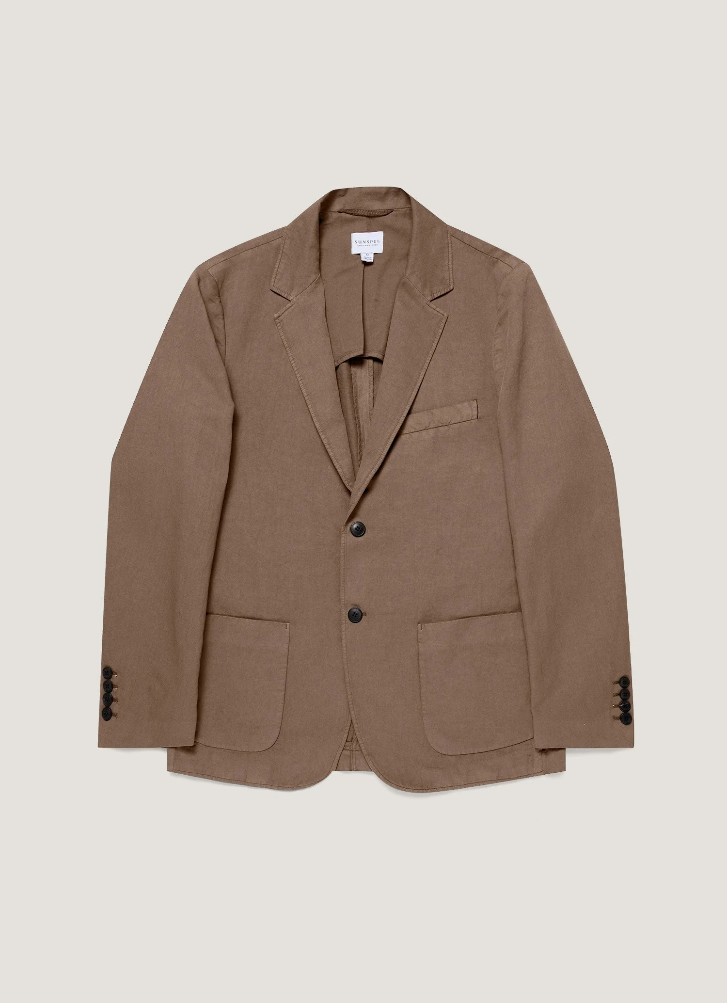 An unstructured blazer in a French cotton-linen mix that offers the softness of cotton combined with the casual look and breathability of linen. Lightly tailored, unlined and garment dyed for a soft, broken in feel. Works nicely over an Oxford shirt or simply with a white T-shirt for an easy summer look. The same cotton-linen fabric is available in trousers and shorts. Product Code: MJAC7185-BRDH Fabric & Care - 76% Cotton, 24% Linen - Fabric woven by Velcorex, France - Horn buttons - Do not wash - Do not tumble dry - Dry clean only - Made in Portugal Size & Fit - Regular fit - Model is 6'2", chest 38" and wears a size M