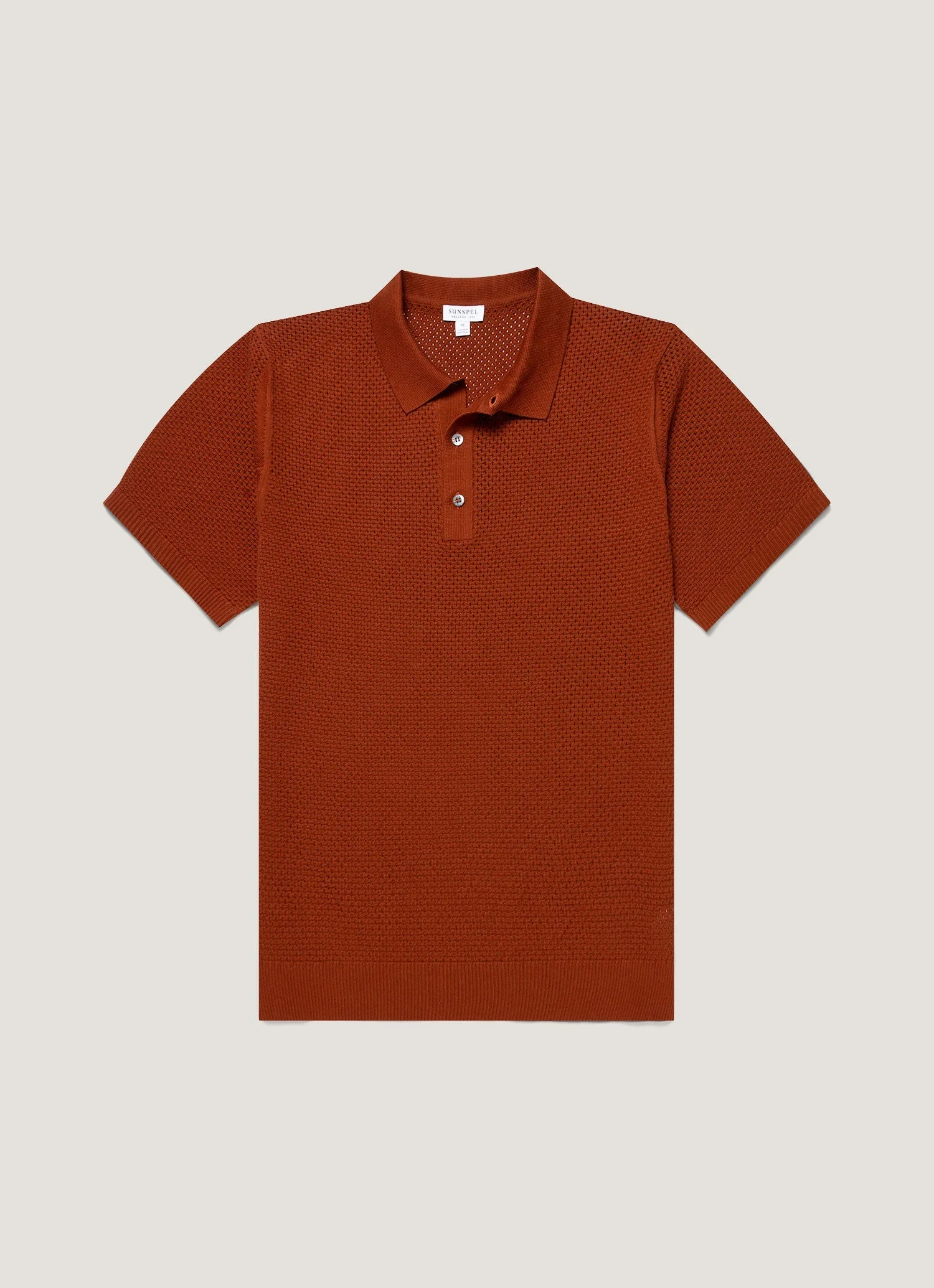 This knitted polo is crafted from Italian-spun Egyptian cotton in a compact mesh stitch, inspired by our archive. With a substantial yet effortless weight, it features a buttoned placket with branded shell buttons, ribbed trims, and a clean, regular fit. A breathable, elevated layer for summer. Product Code: MPOL8316-BRGP Fabric & Care - 100% Cotton - Shell buttons - Gentle wash at 30°C with similar colours - Do not tumble dry - Dry cleanable - Made in Portugal Size & Fit - Regular fit - Model is 6'3", chest 38" and wears a size M